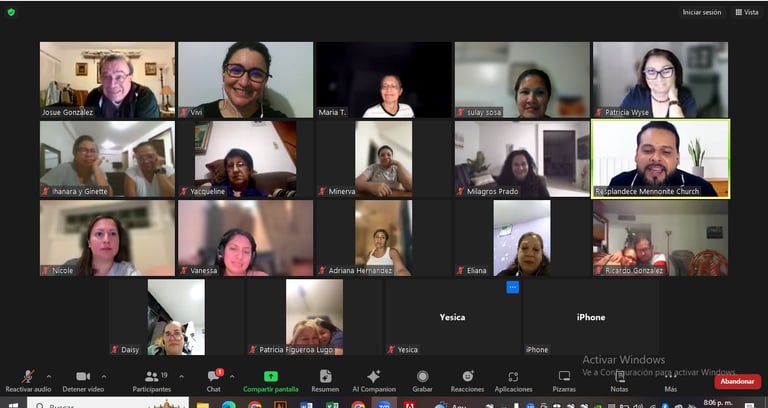 En Resplandece Mennonite Church, nos reunimos presencial y virtualmente por Zoom para adorar y crecer juntos en la fe en los siguientes horarios